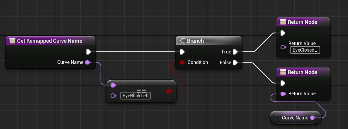 次に、作成したLiveLinkRemapアセットを開き、関数のoverride から Get Remapped Curve Name 関数を選択します。