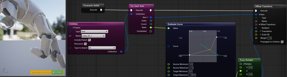 これらの機能を組み合わせることでControlRigを使った手指の開閉制御ができてしまいます。